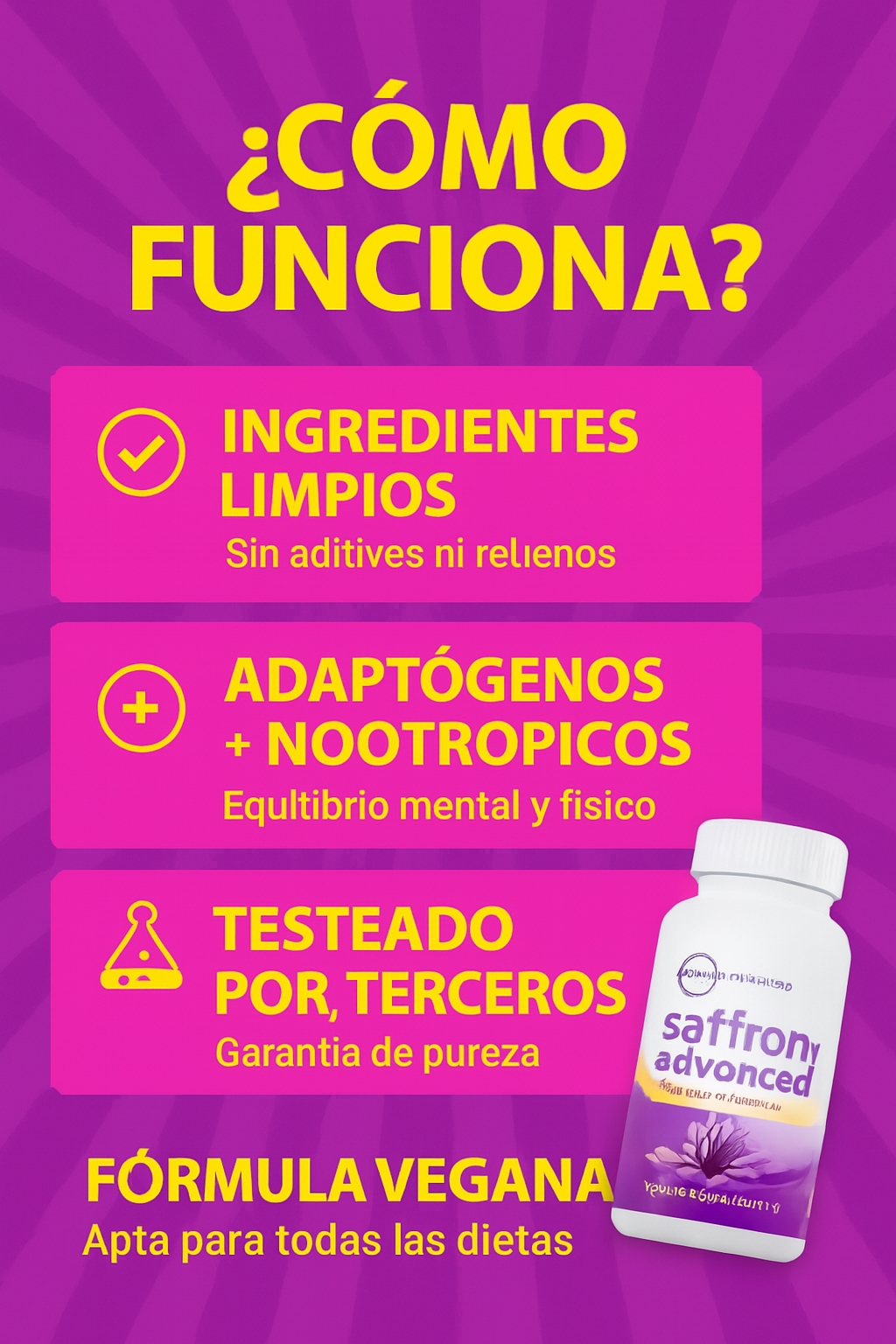 👉 ✅ Saffron+ Advanced está formulado con ingredientes limpios, no contiene alérgenos comunes y cada lote pasa pruebas de terceros. En las dosis recomendadas suele tolerarse muy bien; los efectos secundarios más leves pueden incluir molestias digestivas o somnolencia si se excede la dosis. Si estás embarazada, amamantando o tomas medicación prescrita, consulta antes con tu médico.