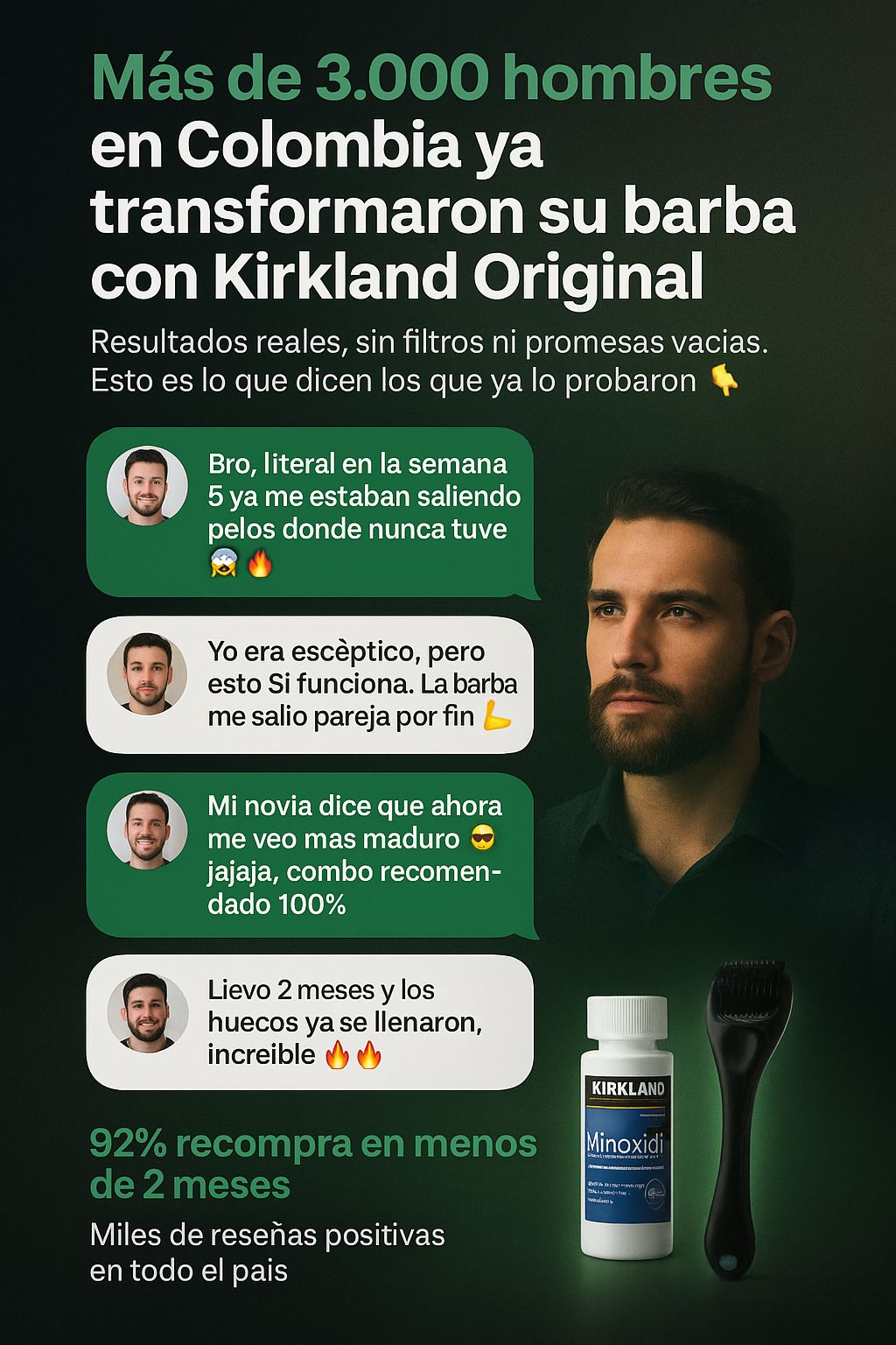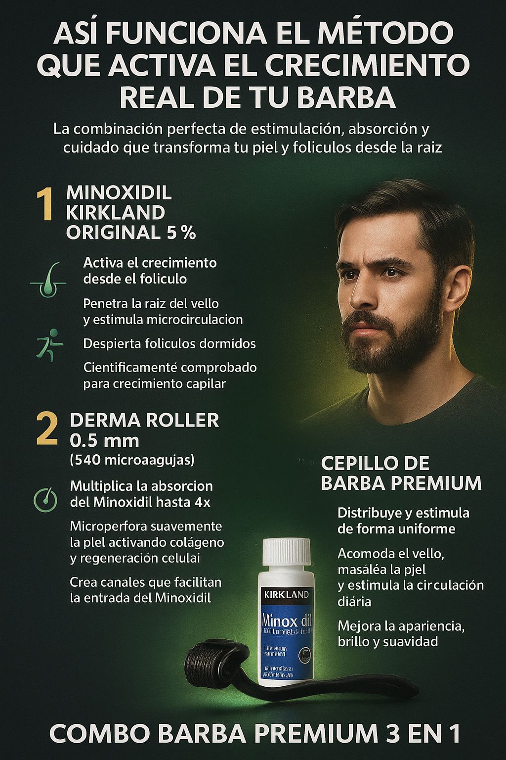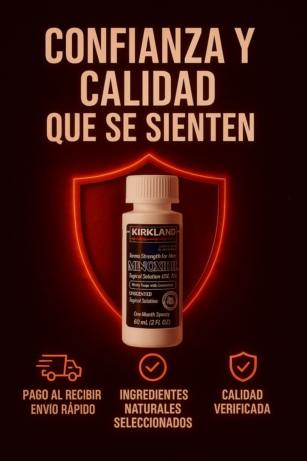 El minoxidil Kirkland 5% es seguro y aprobado por la FDA. Algunos usuarios pueden experimentar leve resequedad o irritación al inicio (normal y temporal). El derma roller debe usarse correctamente (1-2 veces por semana). Incluimos guía completa de uso seguro. No recomendado si tienes piel muy sensible o condiciones dermatológicas activas.